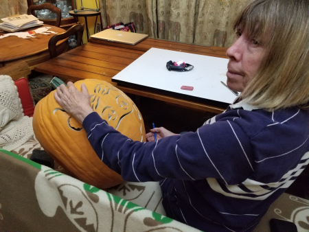 Brigid told me she had a great day yesterday – but I didn’t get a picture. Here she is a couple of months ago, carving a special pumpkin for her job at The Blaze.