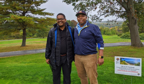Hahaha. That’s my buddy Earl – he lives with five women – four daughters and his wife – with Tim at the Knights of Columbus golf outing last Friday. Two good lookin’ lads.