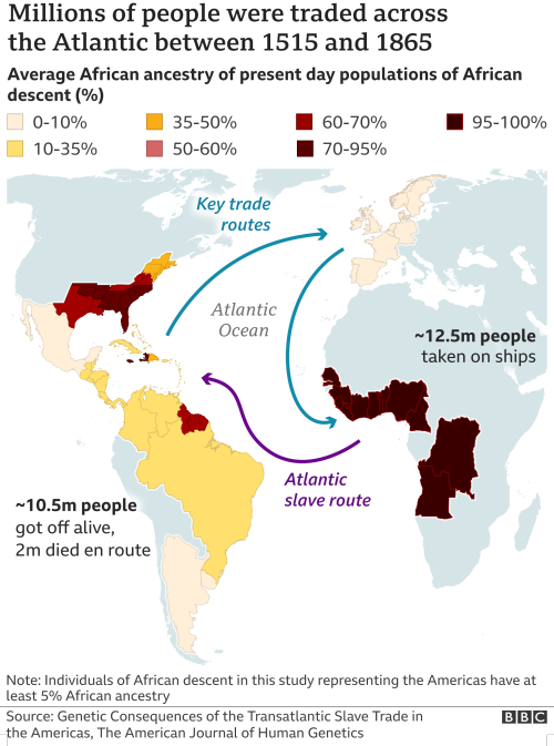 Researchers say this can be explained by the “intercolonial trade that occurred primarily between 1619 and 1807”.