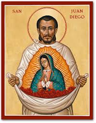 St. Juan Diego (1474–1548) was a poor and humble peasant of the lowest class of Aztec Indians living in what is today Mexico. His native name was Cuauhtlatoatzin, meaning, “eagle that talks.” He was baptized at the age of fifty by a Franciscan missionary priest and received the Christian name of Juan Diego. It was he to whom Our Lady appeared as a pregnant Aztec princess on December 9, 1531—at that time the feast of the Immaculate Conception—on the hill of Tepeyac, in present-day Mexico City, as he was on his way to Mass. To help Juan Diego prove to the bishop that she had truly appeared, the Virgin Mary miraculously left her image on his tilma. This image is now famously known as Our Lady of Guadalupe. St. Juan Diego’s tilma still bears the image of Our Lady (miraculously, as the plant fibers normally disintegrate in 15-20 years) and it hangs in one of the most famous Catholic pilgrimage sites of the world, the Basilica of Our Lady of Guadalupe in Mexico City. Juan Diego was canonized in 2002 by Pope St. John Paul II as the first indigenous saint from the Americas.