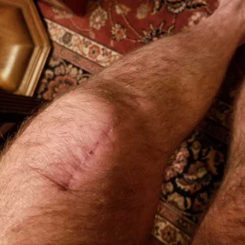 Here’s what the knee looks like now – the scar is about 5 inches.