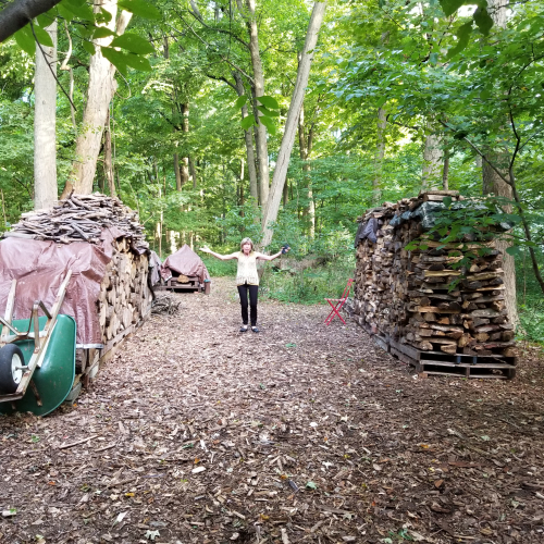 While there, Brigid chopped all this wood to help Rinerville through the winter.