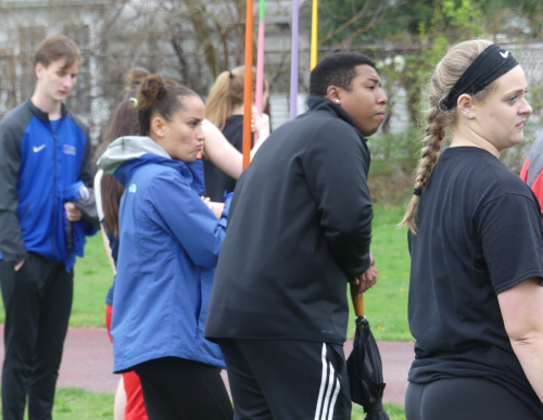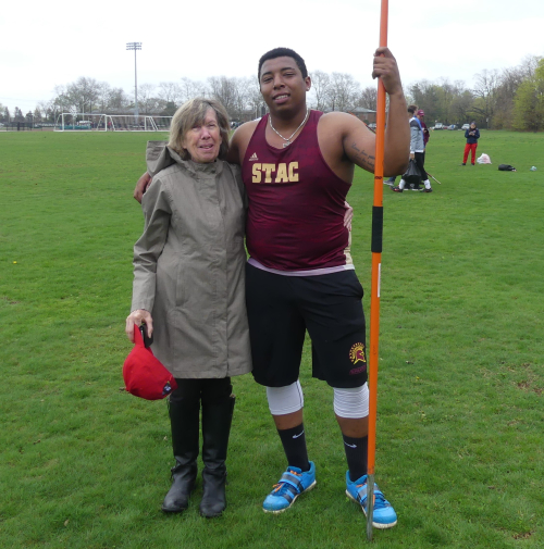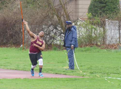 There is a wonderful sporting fraternity with all the throwers in all throwing (javelin, discuss, shot put, hammer) events – they pull for each other. Before Tim’s last throw, the Daemen thrower (name of Sullivan) gave Tim a fist bump. Throwers are hanging together for the 60 to 120 minutes the throwing event takes place and they frequently are in multiple events and see each other at different meets. So they get to know each other.