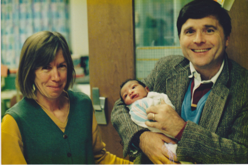 Here we are at Benedictine Hospital in Kingston, NY. Tim was born two days earlier. The nurse said, “He’s a very alert baby.” Little did we know… And we all look A LOT younger.