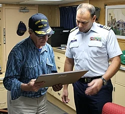 Timothy Mellon a “reclusive” billionaire and Trump supporter. Virtually impossible to find a current or recent photo of him. That’s him in the blue shirt receiving a photograph in 2015 of USCGC Mellon, a ship named after his grandfather, Andrew.