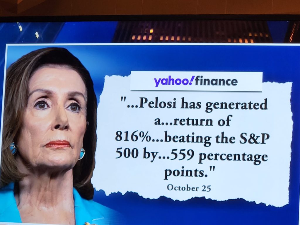 Someone has actually created an app where you can track – and copy if you wish – what they are doing. No doubt based on the financial disclosures they must periodically make while she is in Congress and which are public.