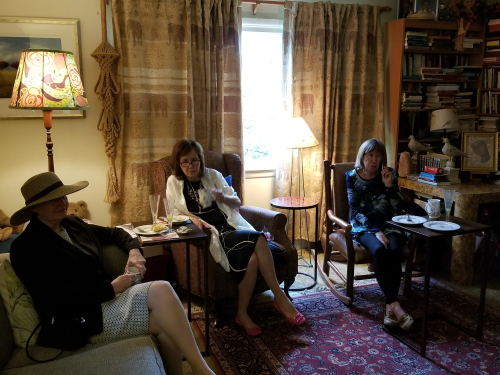 Sort of, as Brigid attends on the BBC channel with Regina and Judy. Note the second picture – Brigid on the phone – to England.