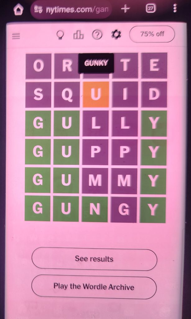 A tough one. Snapped a 37 puzzle success streak. Correct word was GUNKY.