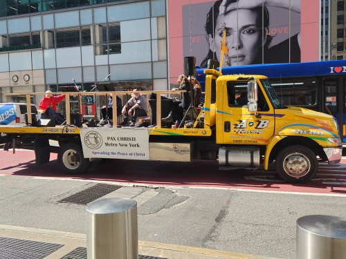 Here’s the accompanying truck where each station is spoken from, with some reflections on a theme, and music. The lady in red at the back is the director of CCD at a Westchester parish.