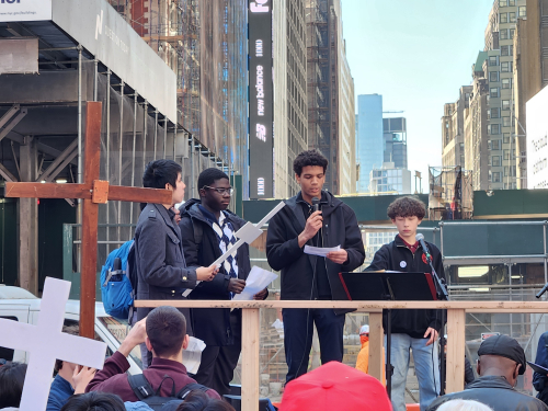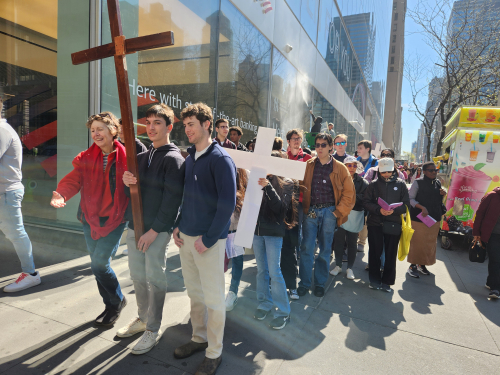 Pax Christi is the Catholic peace organization and this was their 43rd annual Good Friday Stations of the Cross, across Manhattan. Starts near the UN and crosses 42nd St to Holy Cross Church between 8th and 9th Avenue. Since the early nineties Brigid and I have done the stations most years, with a handful missed for cancer and other heavy stuff.