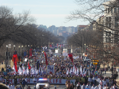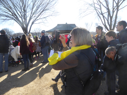 We made sure we were at the top of Constitution Ave. to get good pictures. Two hours after the head of the March reached us, there was no sign of the end. We did not hear the President’s address by video to the Rally at the Mall, but understand it was pretty good. Will have to find it on youtube.