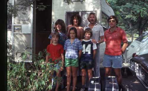 We left Jamaica in July of 1979 and stayed in New york for about two months, before going back to the Caribbean – the Cayman Islands. we had a number of visitors to my parent house where we were staying that summer, including John and Celia Pye, and Emma and Bryn. Our close family friends the Rimms lent us a trailor and the Pyes stayed in it in the driveway for several days. Note that Philip – in front of Brigid – loves to get in our pictures.