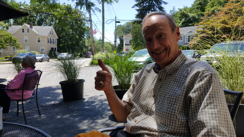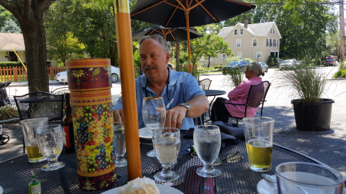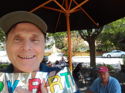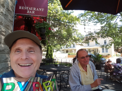 At Justin Thyme. Coincidental that it was my birthday since we’d been aiming to do lunch for awhile. I kept it quiet about my birthday – hoping they’d miss it – but they were alerted by Mike’s wife Karen. Anyway here you go – straight snap and then a selfie shot -because it’s always all about me … And we’d only had a drink, or two …