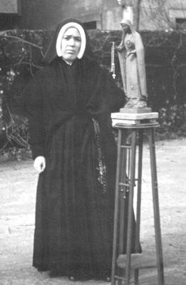 She showed how Our Lady appeared by pulling a Rosary from the pocket of her habit, draping it over the palm of her right hand, and joining her hands together.