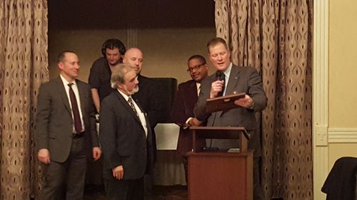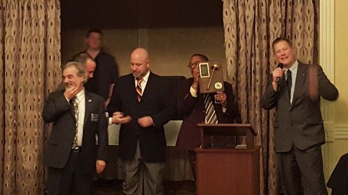 And then the usual goof-balling around as Joe is given a series of gifts and tokens of his service. Mike is demonstrating how to use a gavel…