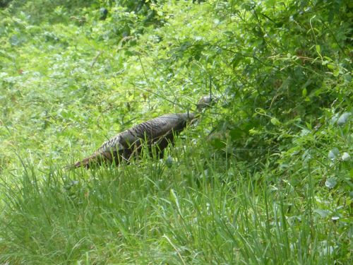 The end of the section crosses the Graymoor Friars property and hikers can camp there; I went right through. The Trail guidebook for this section was really confused; but here’s the back end of a wild turkey on the property as well as another creature that stood still long enough for several pictures.