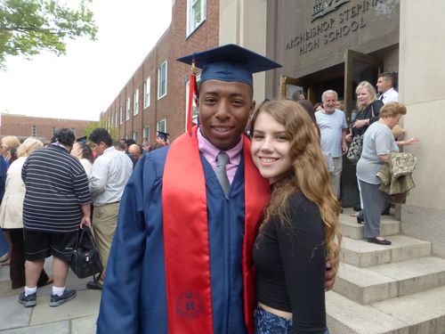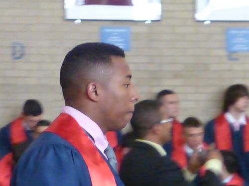 At the actual graduation it was difficult to get pictures, because there was no raised podium where the boys got there diploma; it was all in the gym with everyone at the same level. But Brigid got a serious Tim as he was in line.