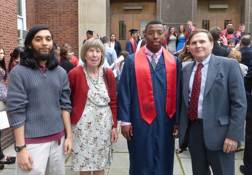 Here are some nice shots, after the ceremony, taken by Brigid and I. Beside Joe and Brigid, our friend Judy Anderson was at the graduation and Tim’s friend Izy (sp?), short for Isabella. It’s easy to figure who is who. We had never met Izy.