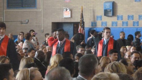 And I took this from the other side of the gym, as I was in the group waiting to hand out diplomas. The gym was packed to the rafters. 170 in the graduating class.