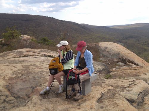 There are two granite benches at the summit, each inscribed with the name of a West Point man – must have been a bitch very difficult to get them to the summit. They were carried, not helicoptered in …
