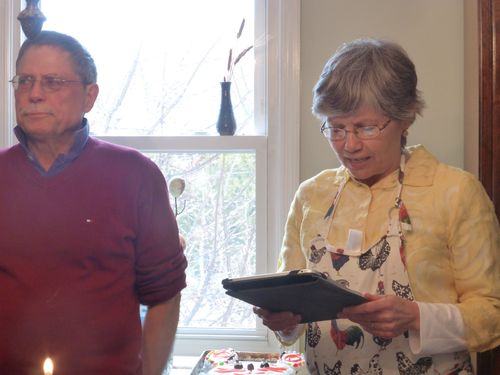 The orchestrators of the day – Damian and Jeanne Marie – as JM reads an after-the-hunt before meal prayer.