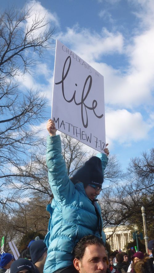 The Washington Post had the following article & in the accompanying picture, I have a very similar picrture of the same little girl, same sign, on her father’s shoulders. That picture, and three others, below the Washington Post link.