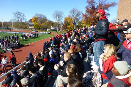The crowd – here’s part of it – easily over 1,000 – was loving it. Except the several hundred St. Peter’s supporters who’d come up from Staten Island.