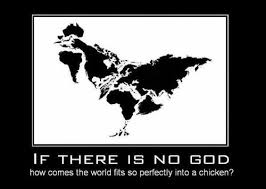 If there is no God, why does the earth fit perfectly into a chicken? Proves that God favors Chick-fil-A!?