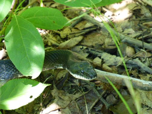I call it a black snake, but JM says it’s a “black rat snake”. Because it eats rats, I guess.