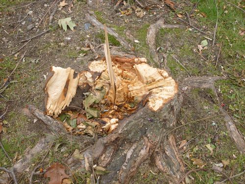 Here’s a young maple tree, that had been snapped off at it’s base. You can see how the trunk fits perfectly with what was left in the ground.