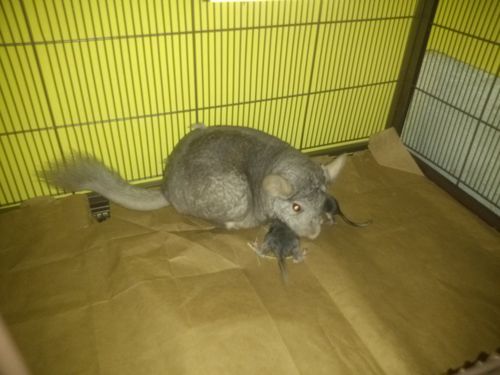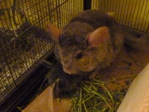 After awhile we put her in a padded bowl back in her cage. She tried to climb out of the bowl once – we found her sprawled all over, pretty sad to see, really – and a little later she stopped breathing. A good way for a chinchilla to leave I suppose, very peaceful.