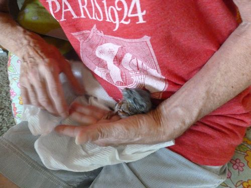 Despite heroic efforts Mittens – that was Joe’s name – didn’t make it.You can just make out three babies in here – one just the tail protruding from under Dusty.