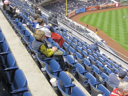 Late in the game, with the result no longer in doubt. But faithful Yankee fan Brigid won’t leave!