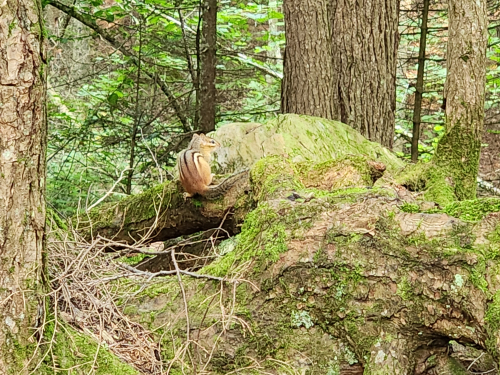In the late afternoon Laurie and I took off for another what we thought would be quick one mile walk, but the sign threw us off and it was twice that. Brigid stayed behind to read and feed the chipmunk.