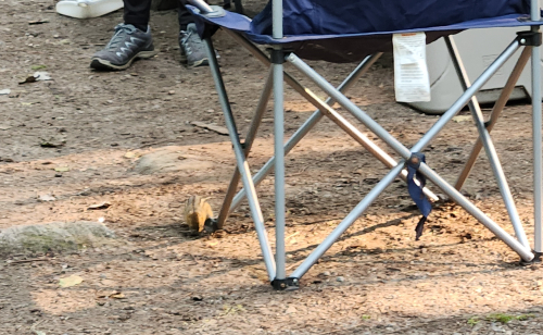 No mosquitoes, no rain, but we did meet the local camp resident who visited us the whole time we were there. Encouraged by Brigid who started putting nuts out for him/her.