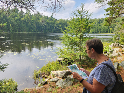 So Saturday the 17th – a 5.4 mile and very scenic hike. From the campsite Laurie and I headed north (Brigid again passed – read her massive book, talked to the chipmunk and other Brigid things). the walk took us through rolling forest areas, not too many big hills and lots of ponds and lakes.