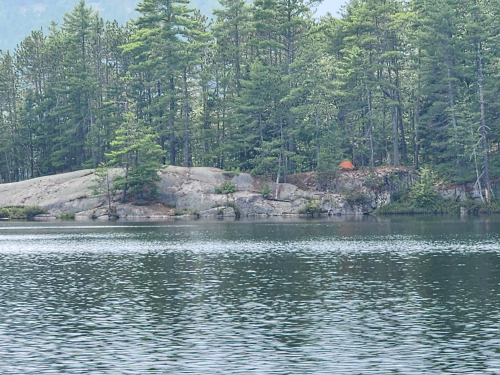 If you look very carefully in the above picture you may barely make out an orange spot across the lake to the right of the large outcrop.