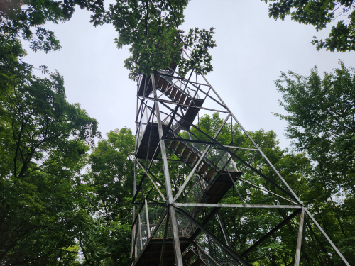 Swede Mountain tops out at 1904′ and the tower is another 50′. But it was cloudy! Too bad.