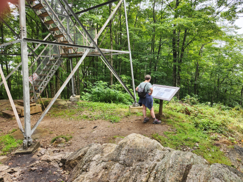 Next and last day we packed up and drove about thirty minutes to Hague, NY and the Swede Mountain Trail to a retired fire tower. Again just Laurie and myself with Brigid staying behind and reading. It’s about a two mile round trip and while some websites rate the trail as “Easy” it was a bit more in the moderate area. But worth it to climb the tower.