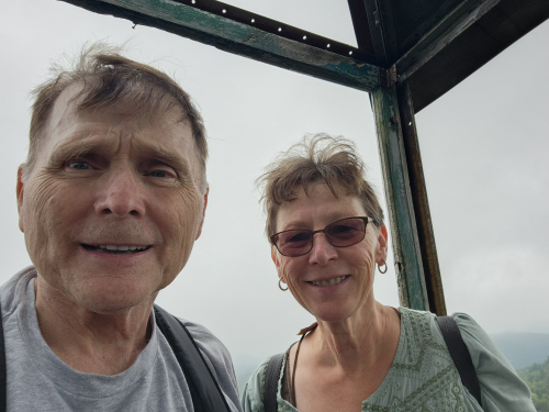 We met a nice fellow at the top, in his 40’s. Had recently come back to the area and was trying to get back to his roots. Wish I’d gotten his picture – so you’re stuck with the two of us.