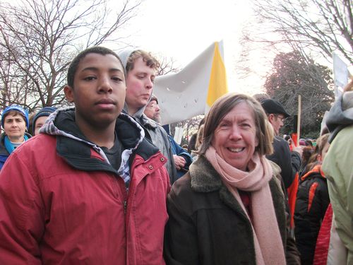 This picture was taken by our good friend Laurie Hurley. the March was amazing – a huge, young, crowd. More pictures to follow in a day or two.