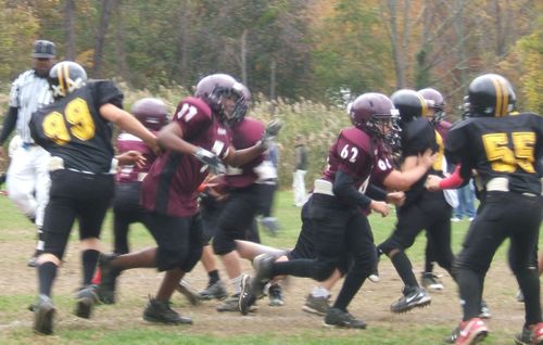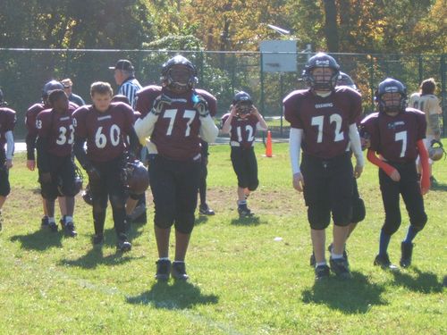 in the last two weeks Tim’s team beat Yonkers by a lot to nothing, and then lost last week to White Plains in overtime, 29-28. That’s a great job by Tim’s team, since Ossining runs three teams in the 5th-6th grade league, and Yonkers and White Plains are much bigger locales with a bigger pool of players.
