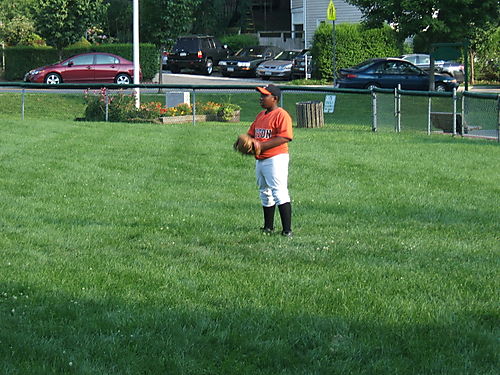 Patrolling the outfield. He’s actually a pretty good outfielder – zero errors all year, and made some difficult catches.