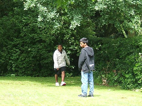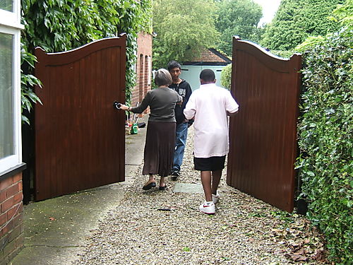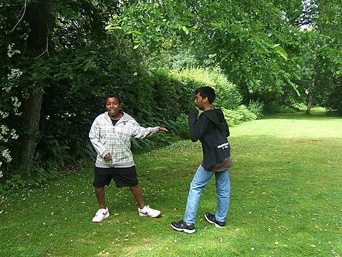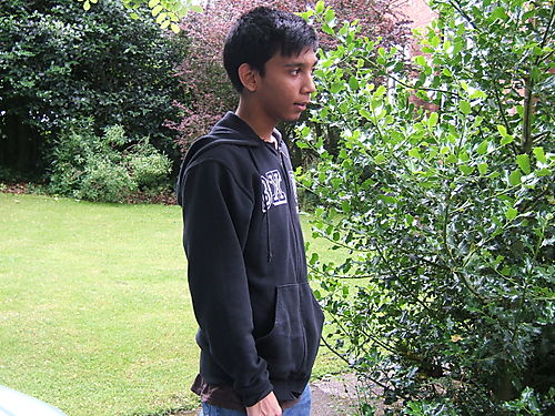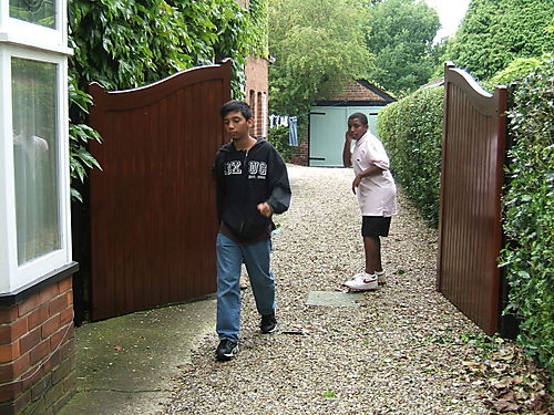 Here are the boys horsing around in the backyard. The yard (“garden” in English lingo) is relatively narrow but very long. And it used to be super duper long, with a large section of it a vegetable garden. Quite a huge vegetable garden. About 12 or 14 years ago the back half or so of the yard (“garden”) was sold off to some house builders.
