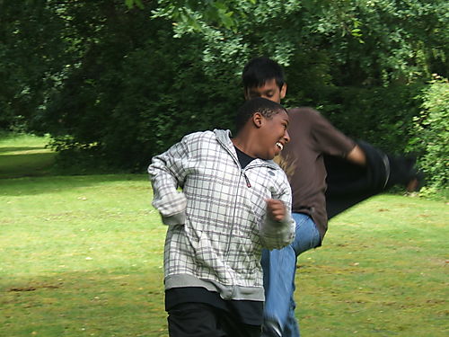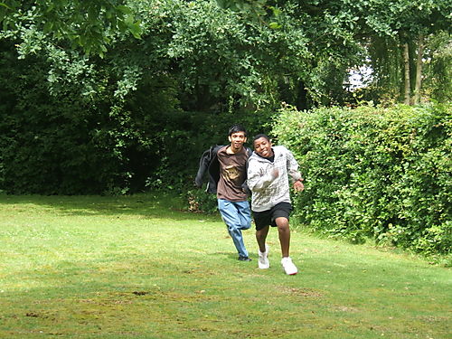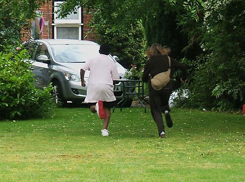 last one – Brigid suddenly challenged Tim to a race in the “garden” and they took off over about thrity yards. Tim won – but only barely!