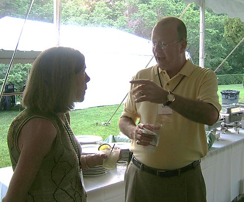 Here is Brigid talking to Larry Halloran. I know Larry from writing for the Fairfield U. newspaper. He would write the serious stuff, while I wrote the rugby articles for the sports page. He works in Washington as Minority Staff Director for the House Committee on Oversight and Government Reform.