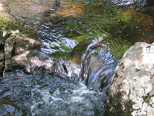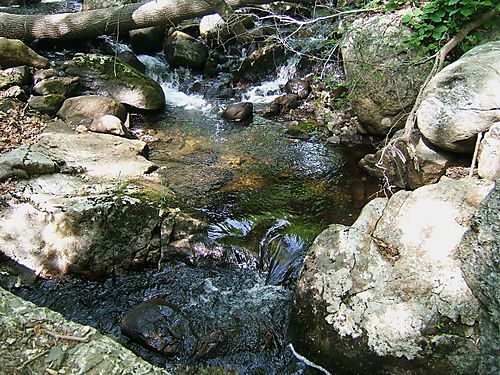Early on, I got myself on the opposite side of a stream from everyone else; Kathy took my picture, and I took hers –
