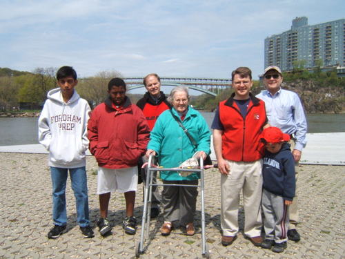 Here’s an all-boys-with-grandma picture – sun in our eyes – taken by Brigid – while we were at the wrong location! (Nice job Phil). We went to the Columbia boathouse, while the race was nowhere near there.