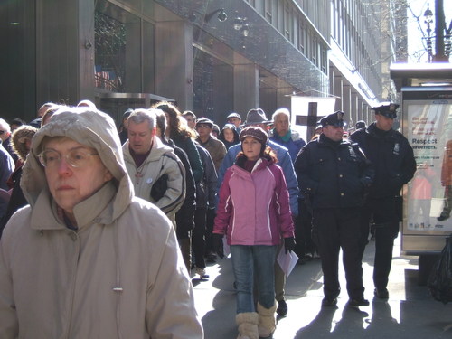 This was the 26th year in a row they organized the Stations. Brigid and I participated for many years, from about 1991. I think being involved in a public display of belief, in a high profile location like mid-town Manhattan is very worthwhile. We brought Joe and then Tim along, but eventually that became too much (when your kids start saying at the third station “I’m bored” or “When are we going home?”, you know it’s too much). So for several years I went on my own, with members of my parish, Holy Name of Mary. The whole event takes about three hours, but I usually cheat, and arrive around the 4th or 5th station. The last time I went was 2005; I missed the last two years because of my lymphoma.