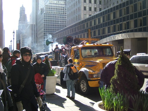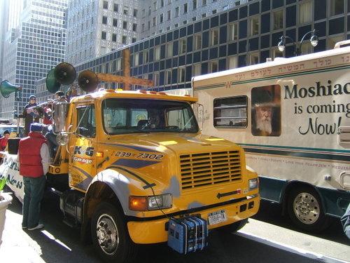 Amusing; a Jewish Lubavitch-evangelizing HQ motor home is also patrolling 42nd St. I think I’ve seen this during previous Pax Christi Stations.